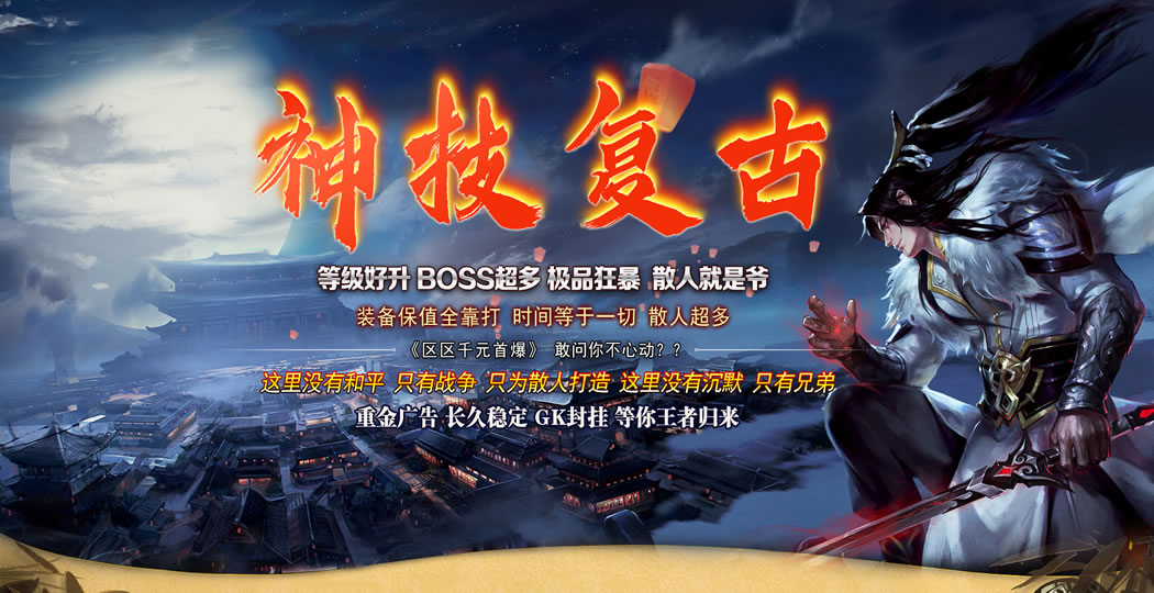 【版本介绍】:专属沉默-远古龙魂-降妖除魔-装备鉴定-BOSS之家-古风大作-三大陆天命